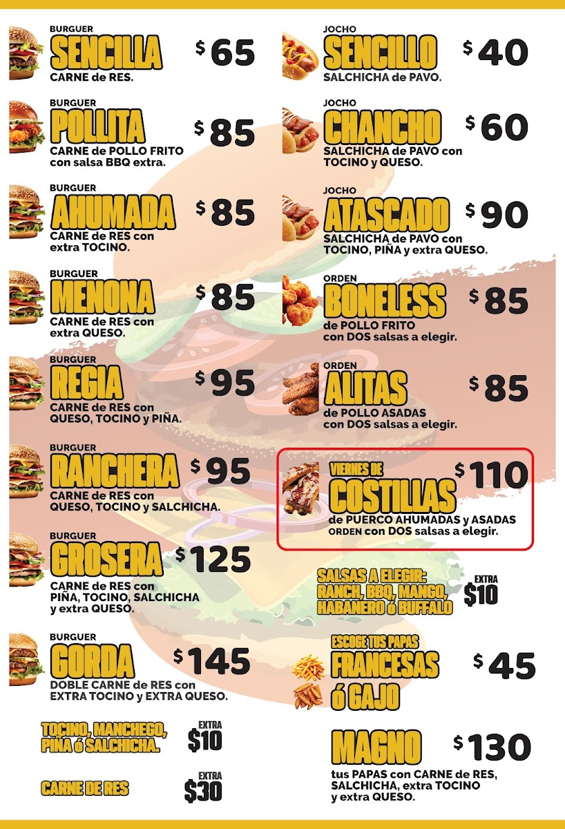 Complement your meal with crispy Oniono's and Sdoggys or savor the robust flavors of their alitas and costillas. Customers rave about the quality and affordability, often referring to the restaurant as a must-visit for burger enthusiasts. With reviews highlighting the excellent service and clean environment, Ñam Ñam Burguer truly delivers an unforgettable dining experience. If you're searching for delicious, satisfying food in a cozy setting, look no further!